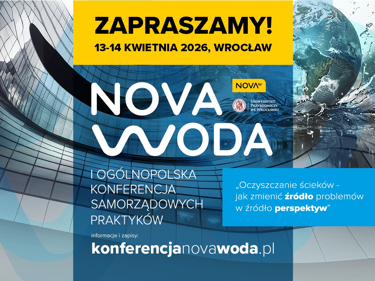 NOVA WODA 2026 - to nowe, ogólnopolskie wydarzenie zostało stworzone z myślą o tych, którzy na co dzień odpowiadają za decyzje, inwestycje i eksploatację w gospodarce wodno-ściekowej. W dniach 13–14 kwietnia 2026 r. na Uniwersytecie Przyrodniczym we Wrocławiu odbędzie się I Ogólnopolska Konferencja Samorządowych Praktyków NOVA WODA 2026 pod hasłem: „Oczyszczanie ścieków – jak zmienić źródło problemów w źródło perspektyw”.